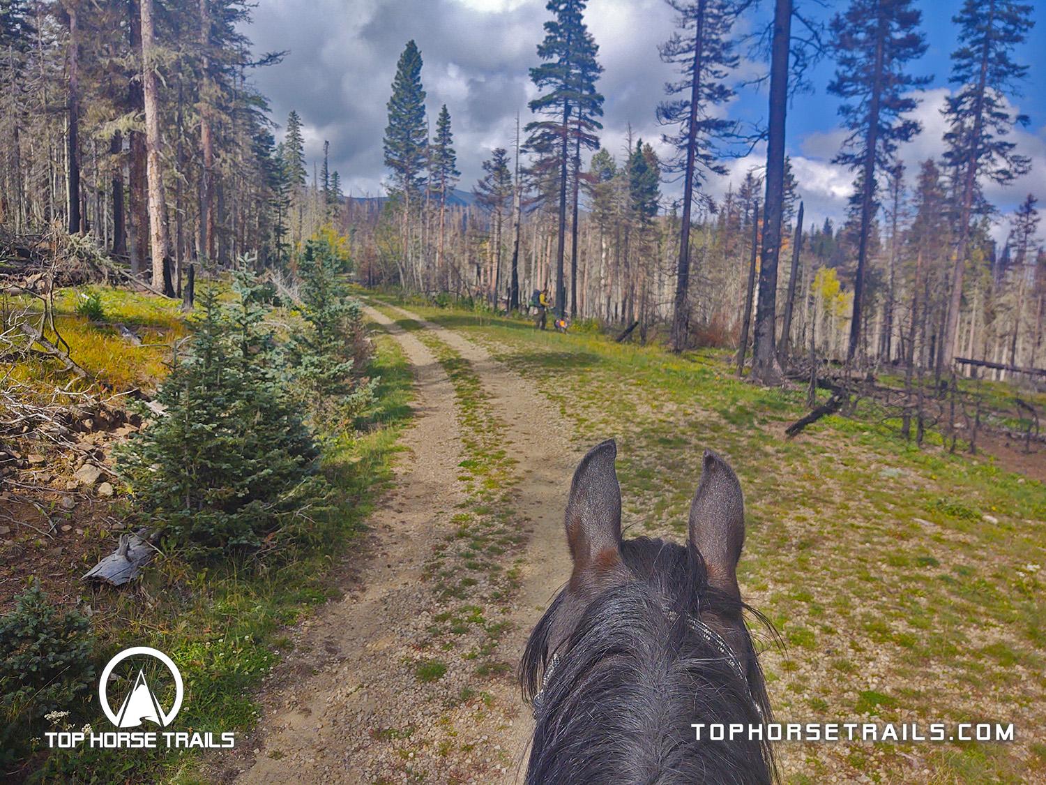 Moderately difficult trail to a high alpine lake. Trail crosses and follows a creek part of the way. Somewhat steep sections of trail. Portions of trail are exposed and not recommended to ride during bad weather or lighting/thunderstorms.